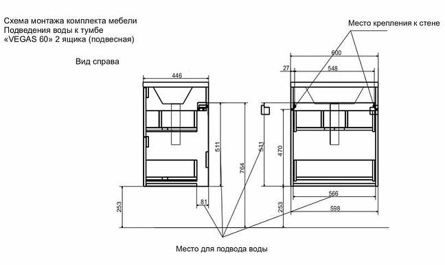 Подвесная тумба под раковину Эстет Vegas ФР-00003489 60см два ящика белый