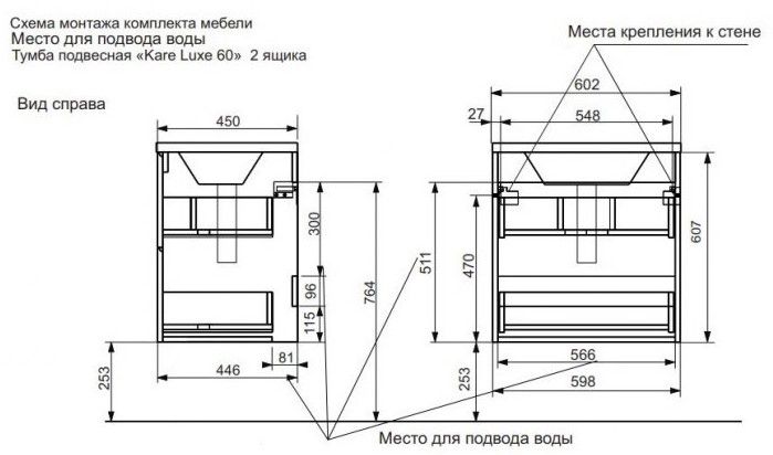 Подвесная тумба под раковину Kare Luxe ФР-00007075 60см два ящика белый