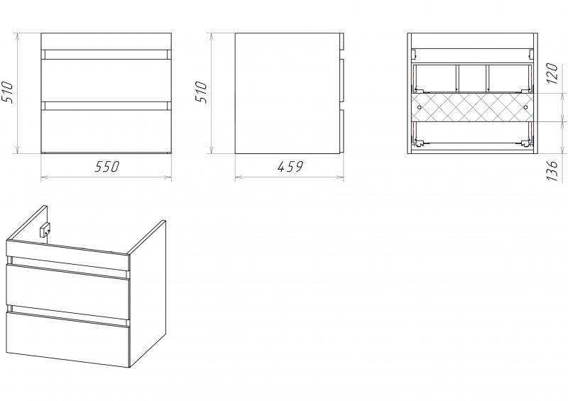 Подвесная тумба под раковину Misty Фостер под стиральную машину 55см с двумя ящиками белый купить