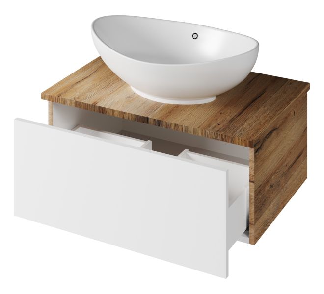 Подвесная тумба под раковину Misty Ива 70см белый/дуб Вотан