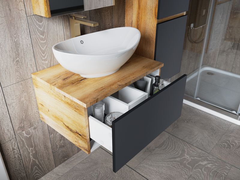 Подвесная тумба под раковину Misty Ива 70см графит/дуб Вотан