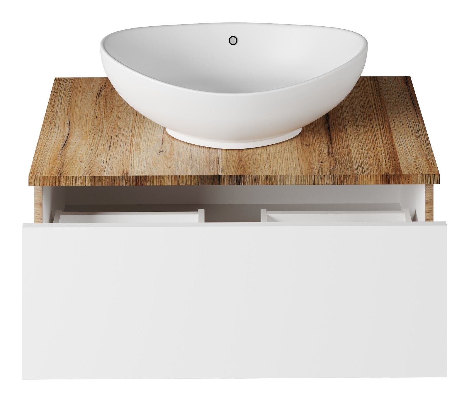 Подвесная тумба под раковину Misty Ива 80см белый/дуб Вотан