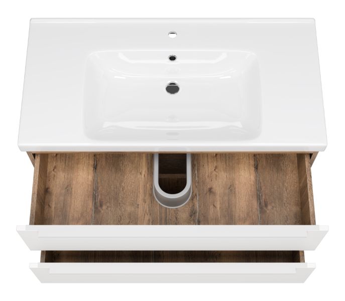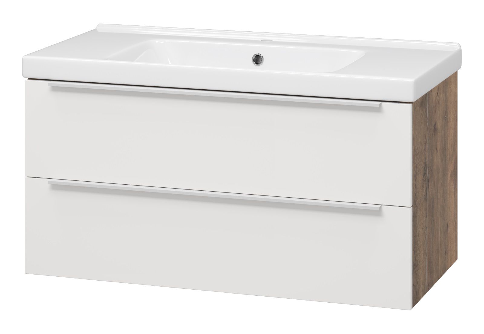 Подвесная тумба под раковину Misty Карат 100см белый/дуб Галифакс олово