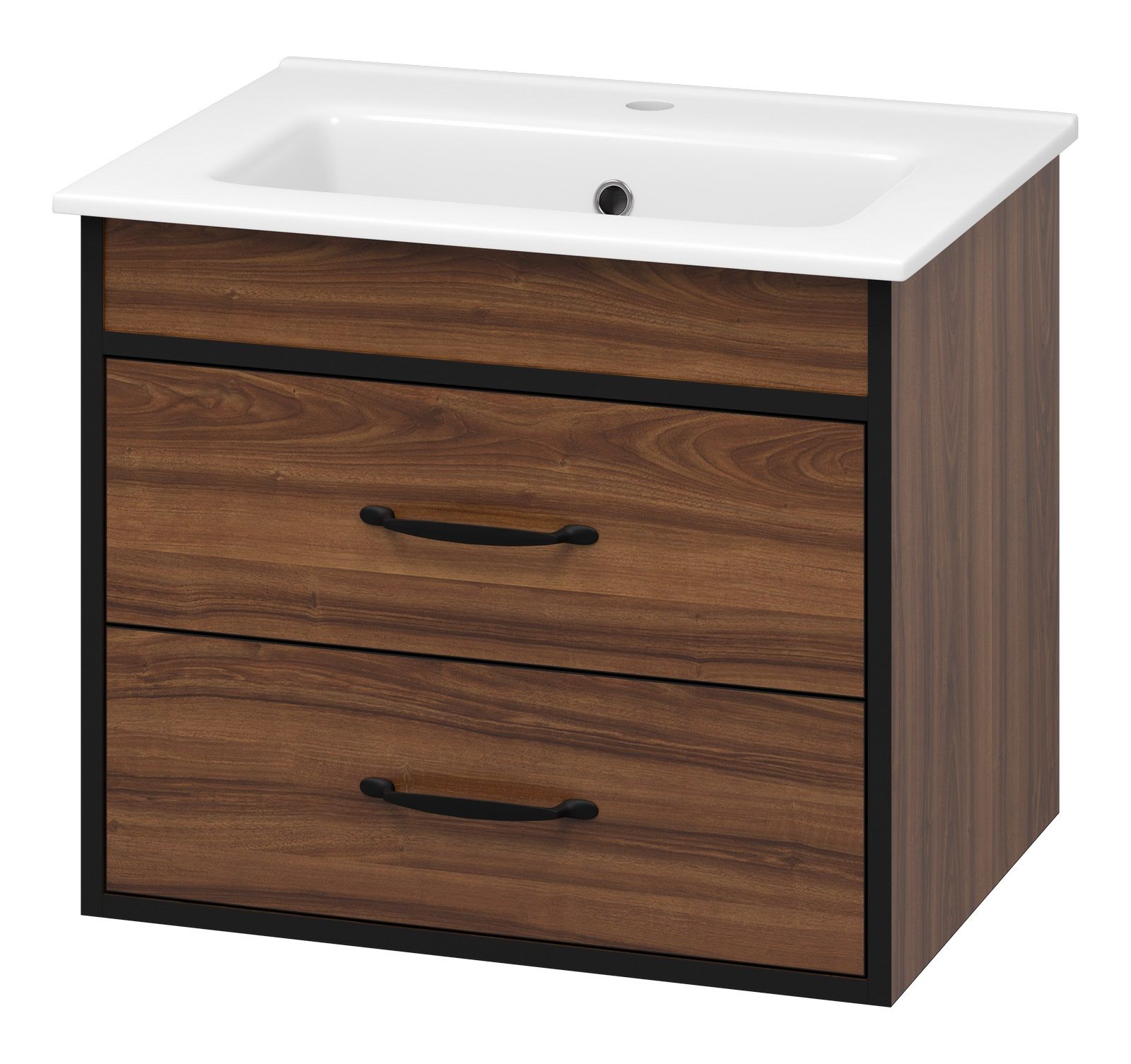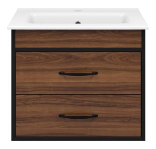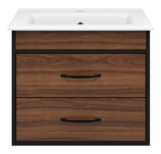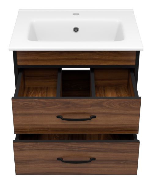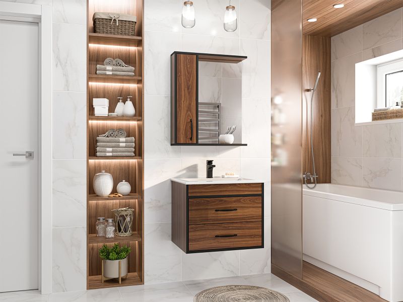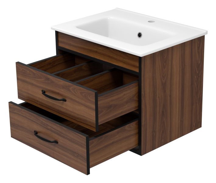 Подвесная тумба под раковину Misty Кедр 60см чёрный/орех