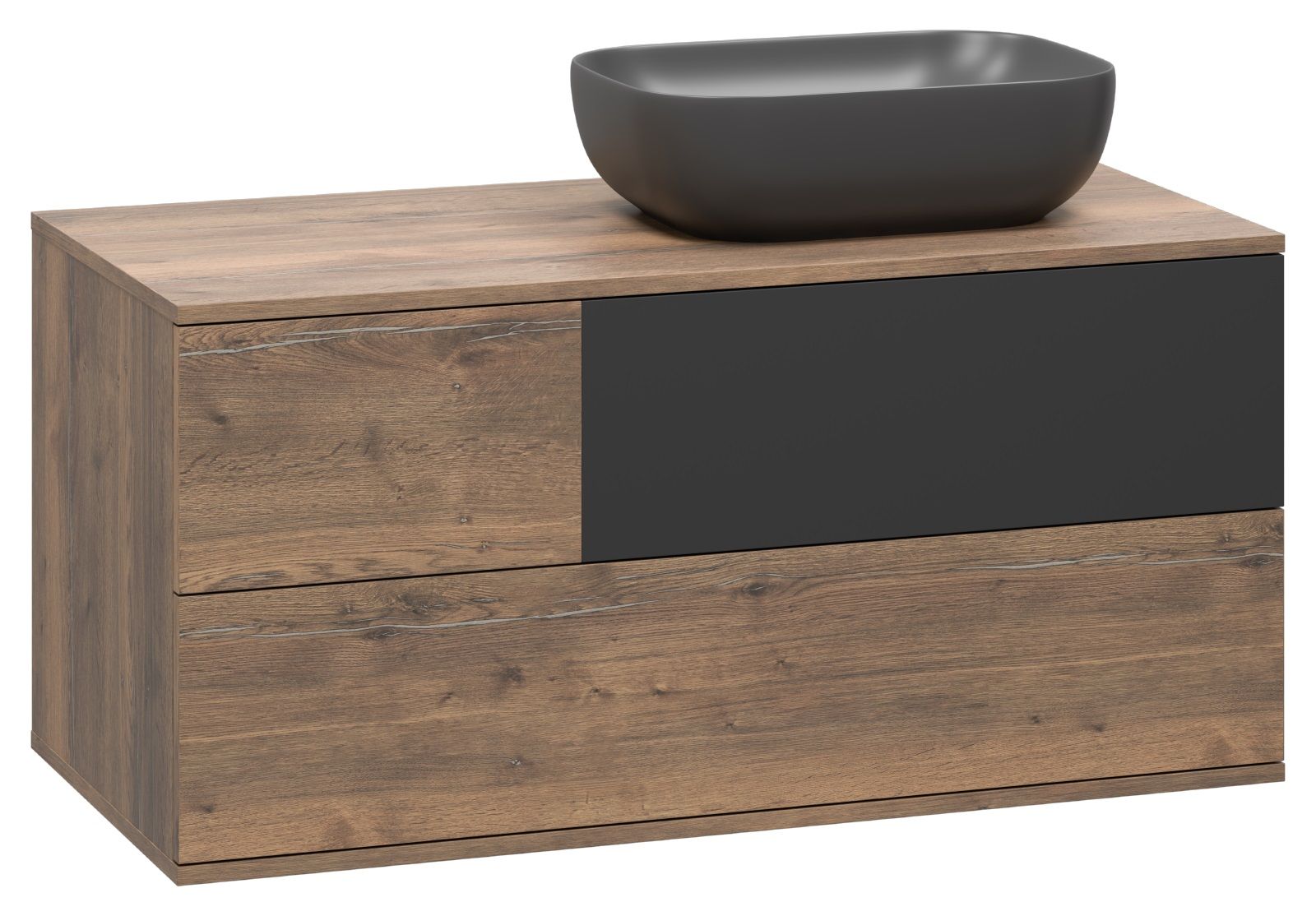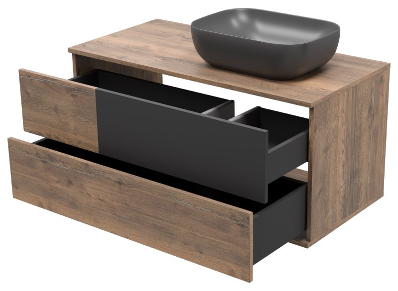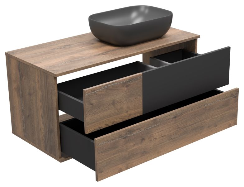 Подвесная тумба под раковину Misty Коломбо 100см правая дуб Галифакс/антрацит