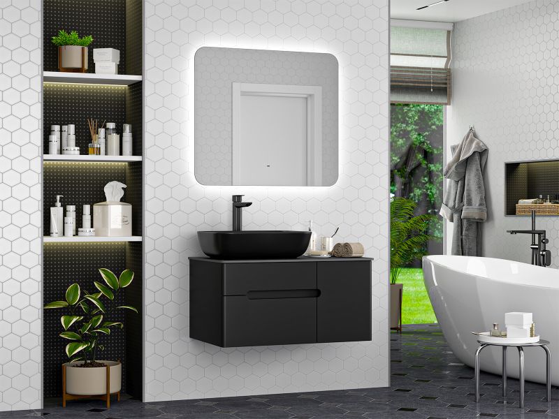 Подвесная тумба под раковину Misty Роял 80см чёрный