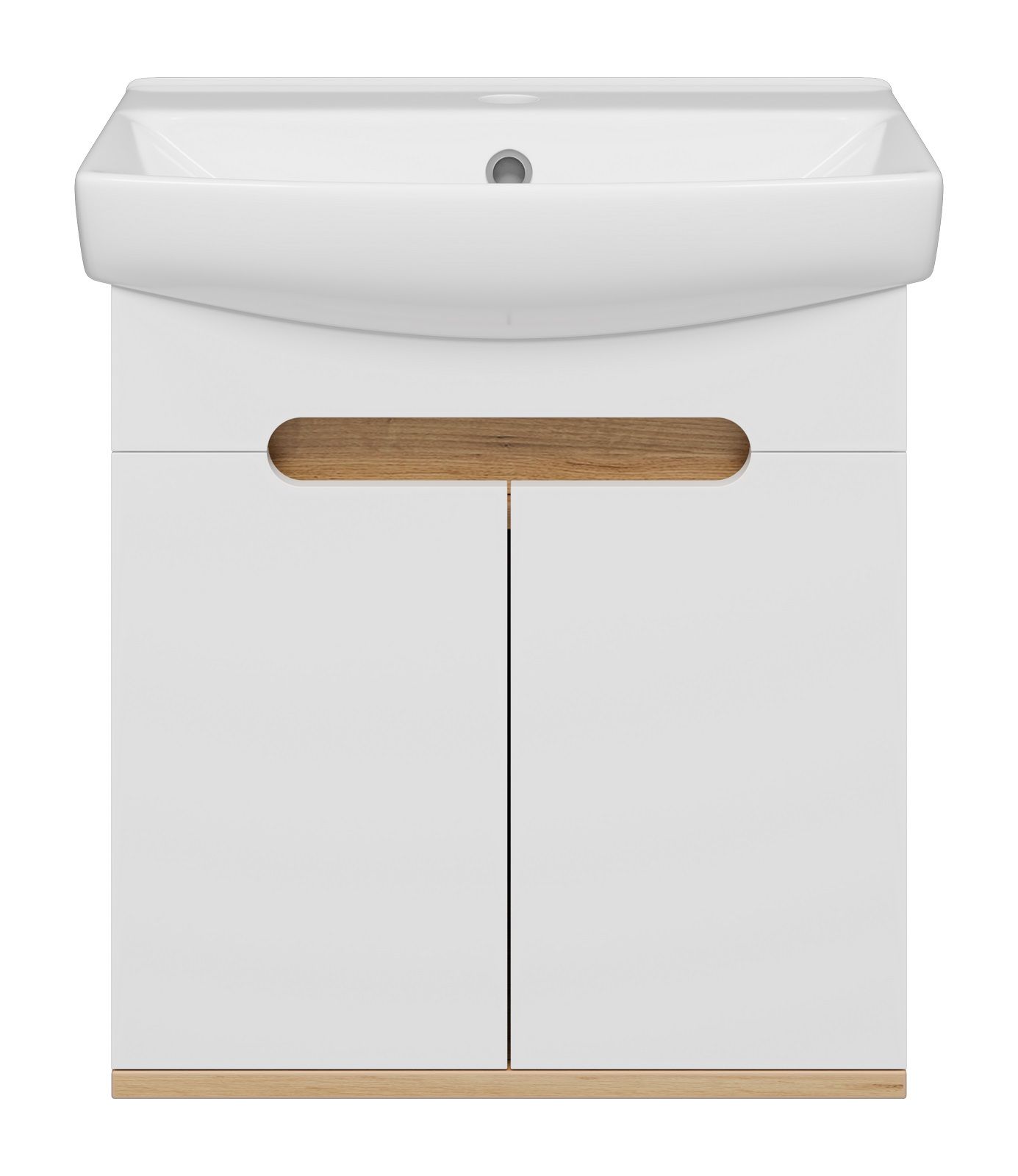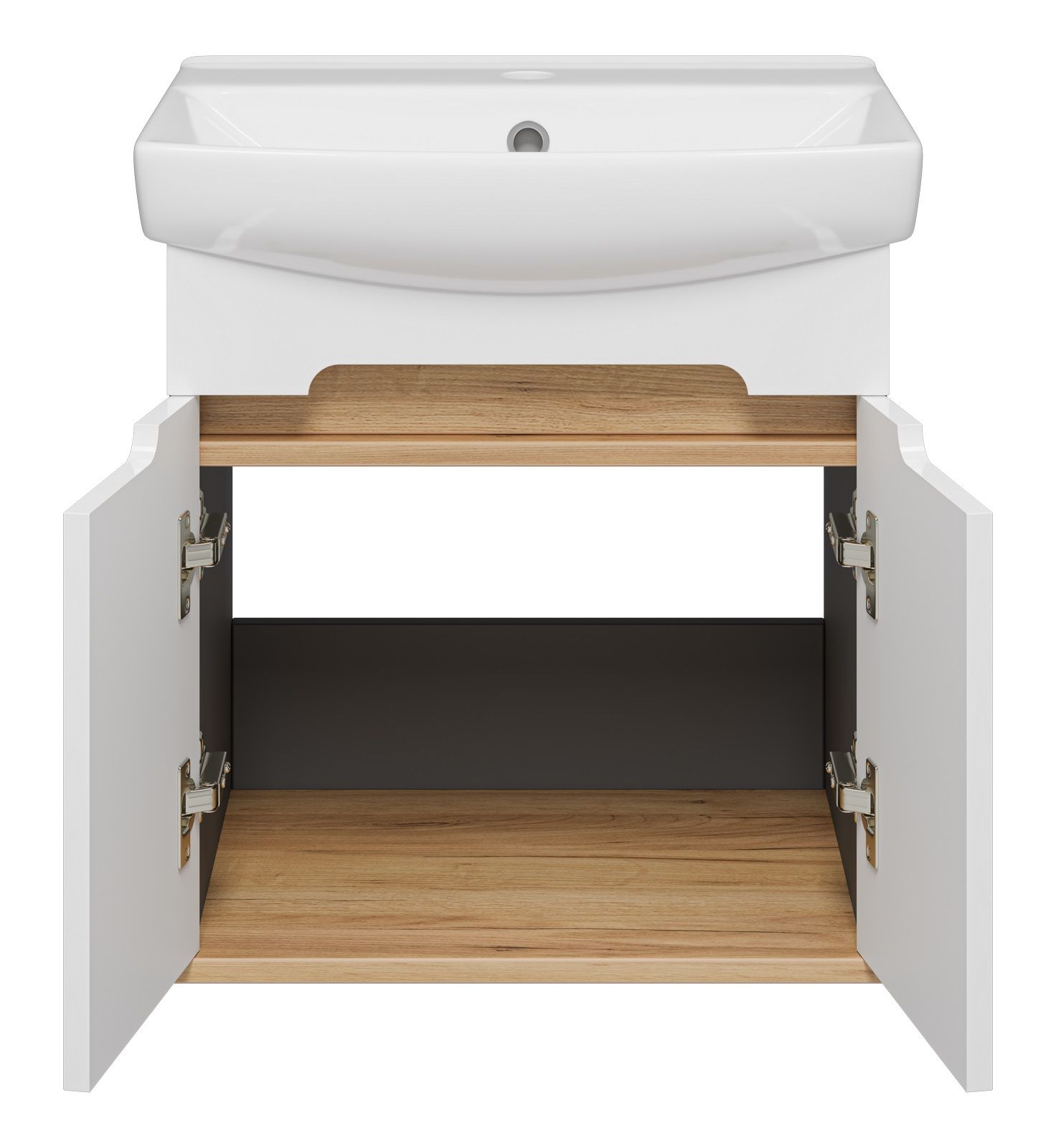 Подвесная тумба под раковину Misty Сканди 50см белый/дуб крафт золотой/антрацит