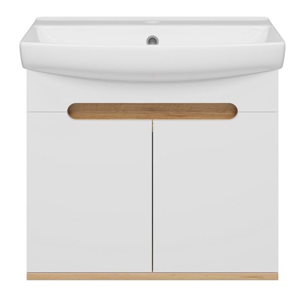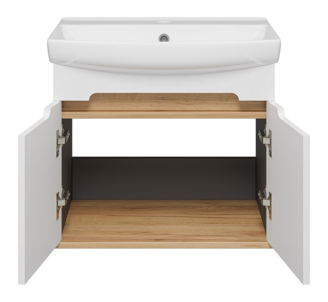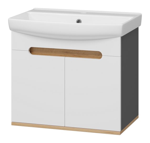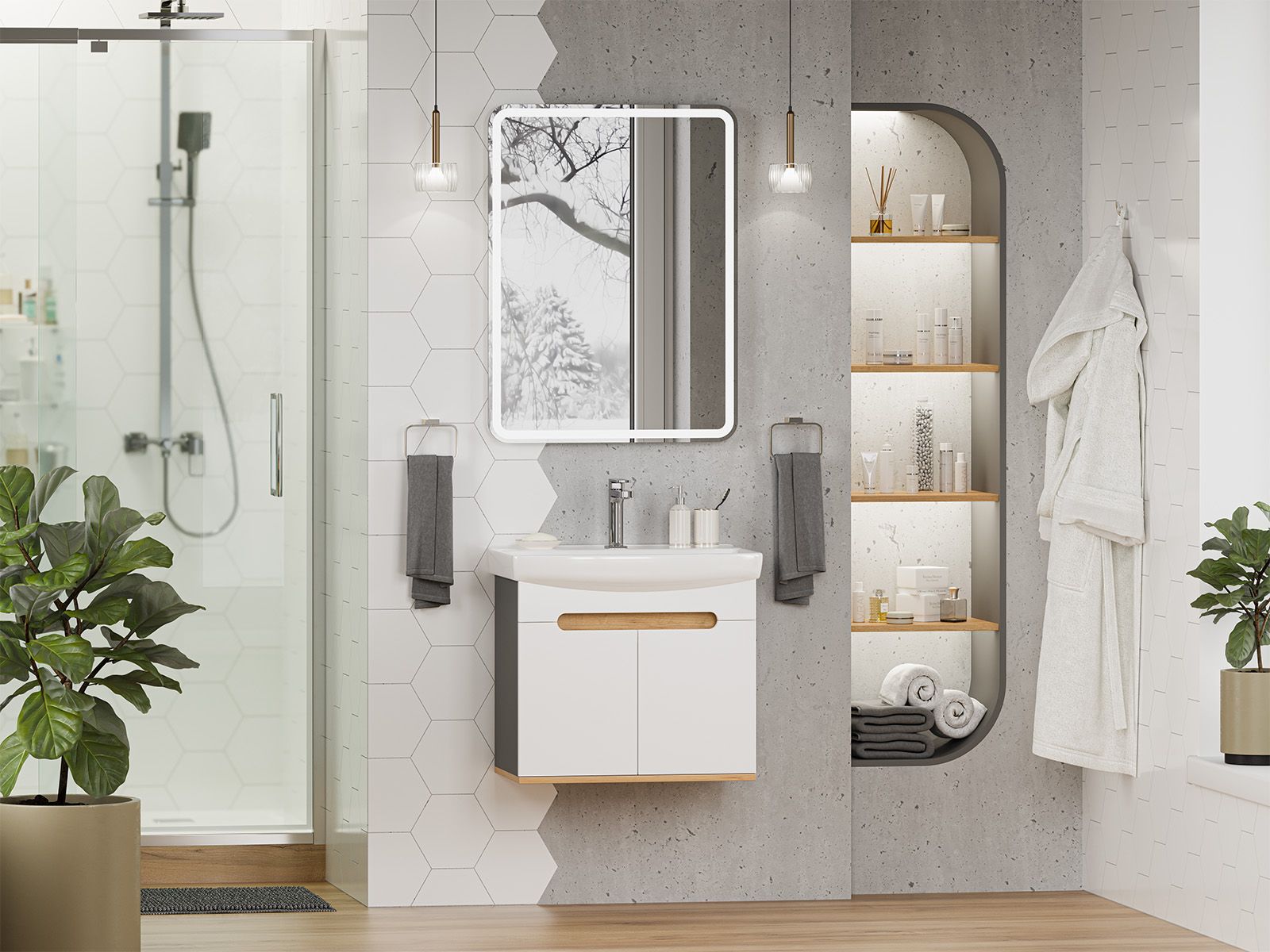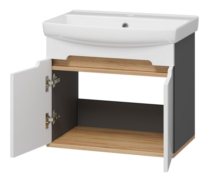 Подвесная тумба под раковину Misty Сканди 60см белый/дуб крафт золотой/антрацит