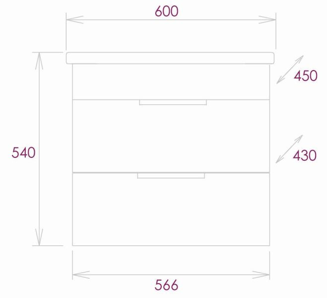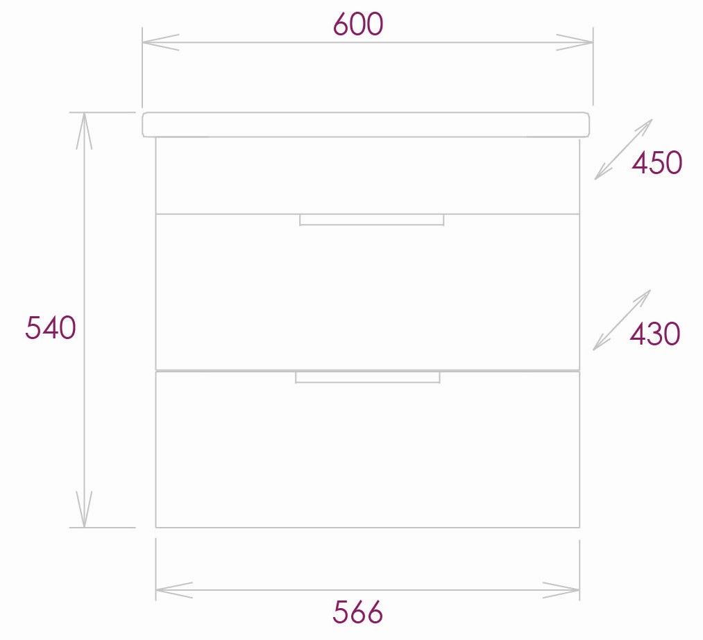Размеры тумбы без учета раковины 57х43х50 см.