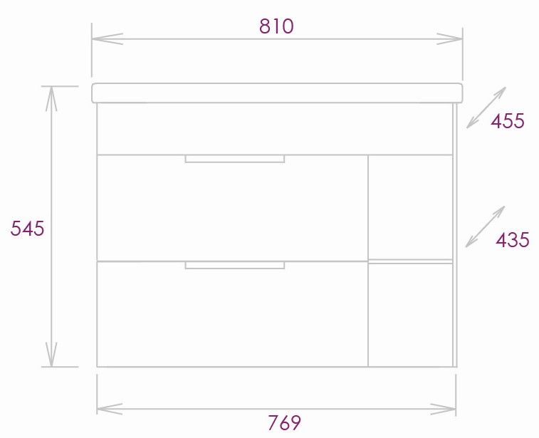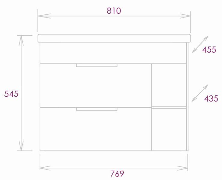 Тумба имеет два ящика, снабженные системой плавного закрывания. Нижний предназначен для больших предметов, а верхний, имеющий удобную систему организации пространства, - для мелких аксессуаров. Две открытые полки справа от ящиков служат дополнительным пространством для хранения.