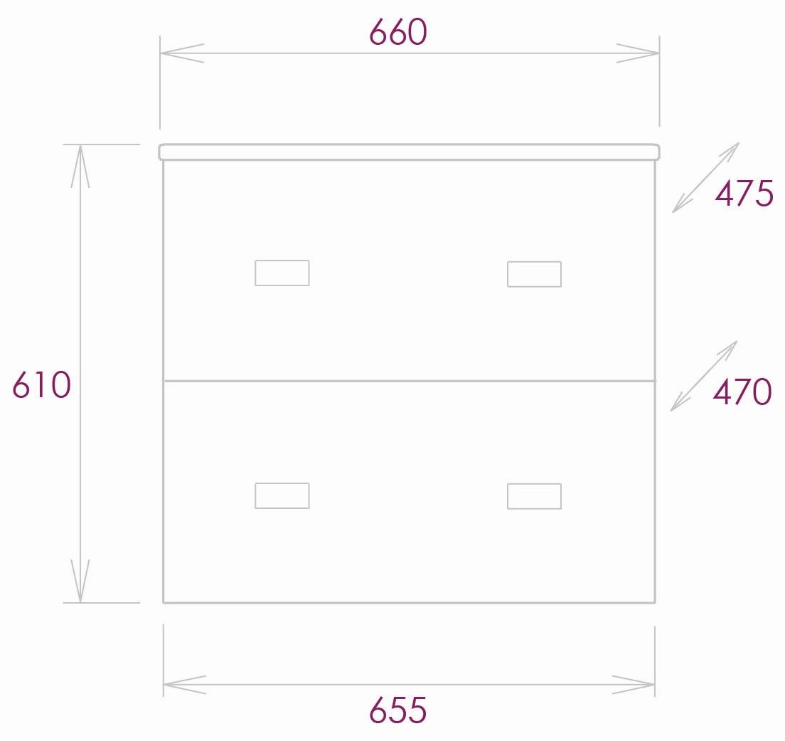 Два ящика тумбы плавно открываются и закрываются благодаря направляющим полного выдвижения с доводчиками. Нижний ящик предназначен для больших предметов, а верхний, имеющий удобную систему организации пространства, - для мелких аксессуаров.