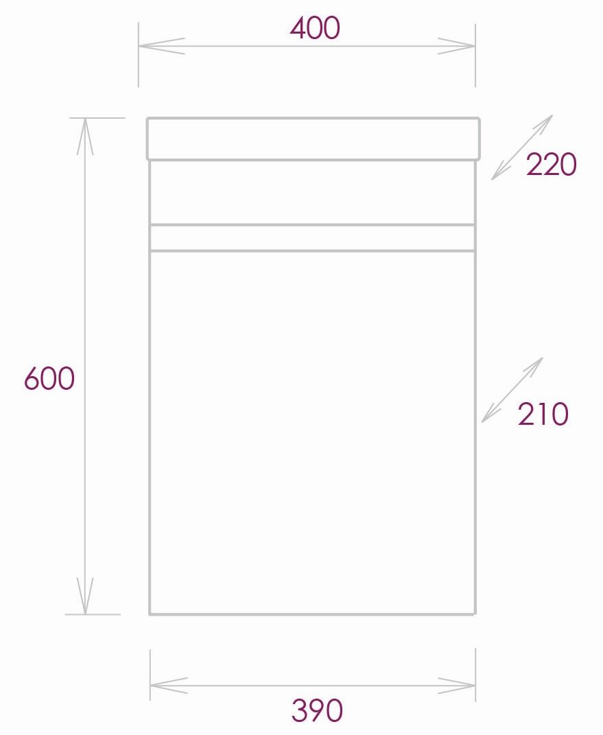 Тумба имеет белый глянцевый фасад и строгие формы без декора. За дверцей с интегрированной ручкой скрывается пространство с полкой для размещения необходимых бытовых принадлежностей.