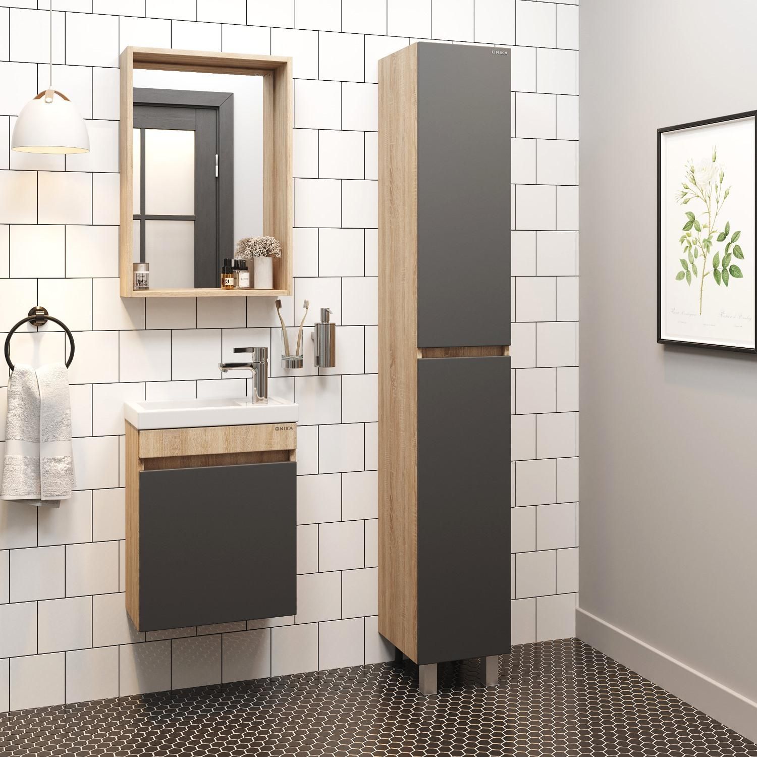 Подвесная тумба под раковину Onika Милтон 104511 45см серый/дуб сонома купить