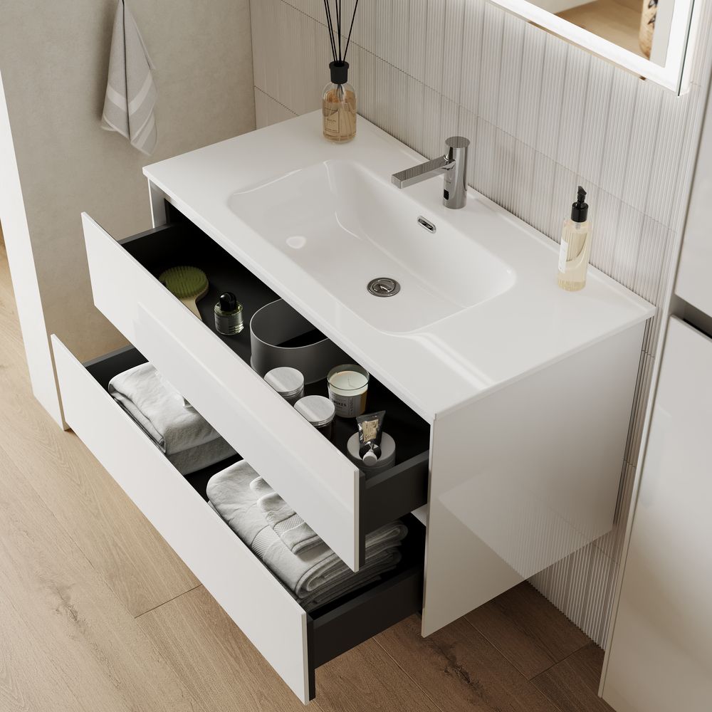 Подвесная тумба под раковину Sancos Cento CN60W 60см белый глянец