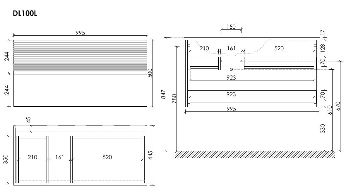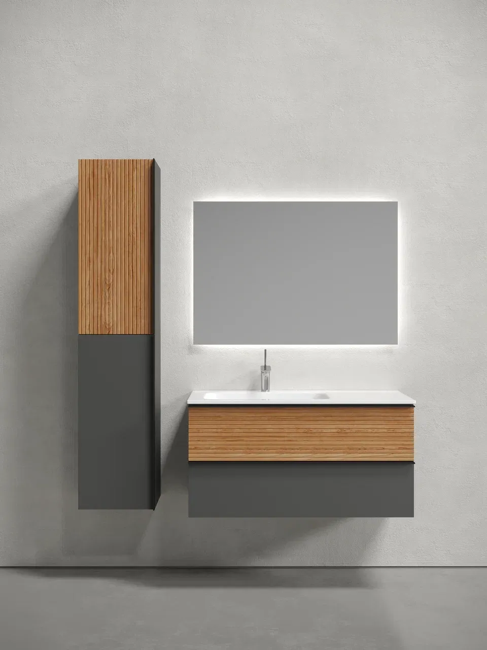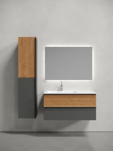 Подвесная тумба под раковину Sancos Delta DL100LGR левая 100см дуб красный/графит купить
