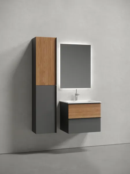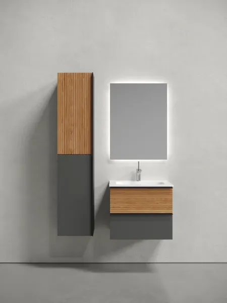 Подвесная тумба под раковину Sancos Delta DL60GR 60см дуб красный/графит купить