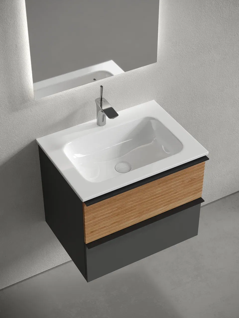 Подвесная тумба под раковину Sancos Delta DL60GR 60см дуб красный/графит