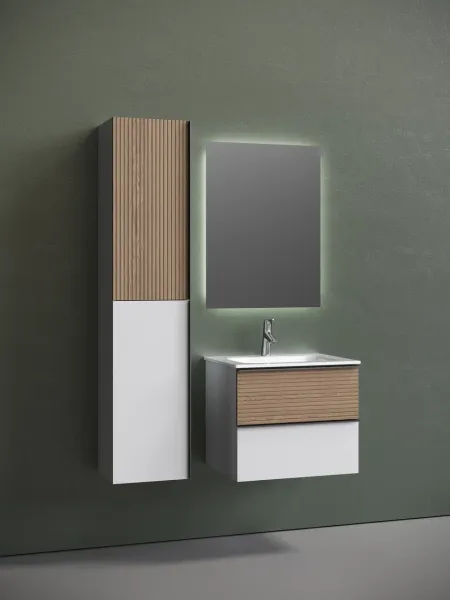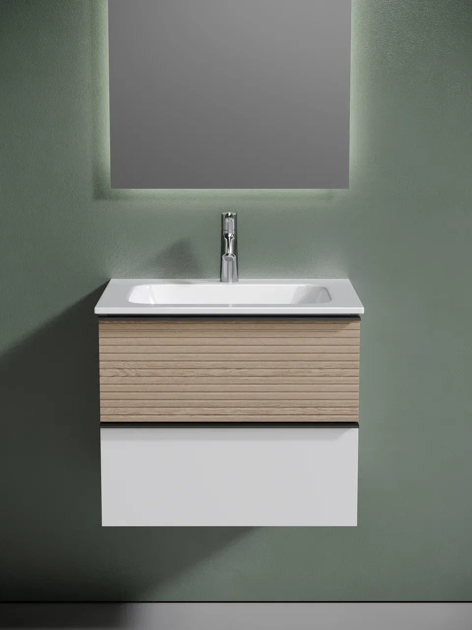 Подвесная тумба под раковину Sancos Delta DL60W 60см дуб светлый/белый