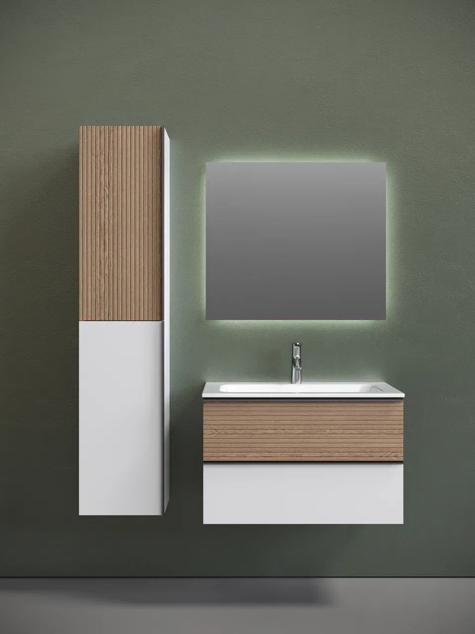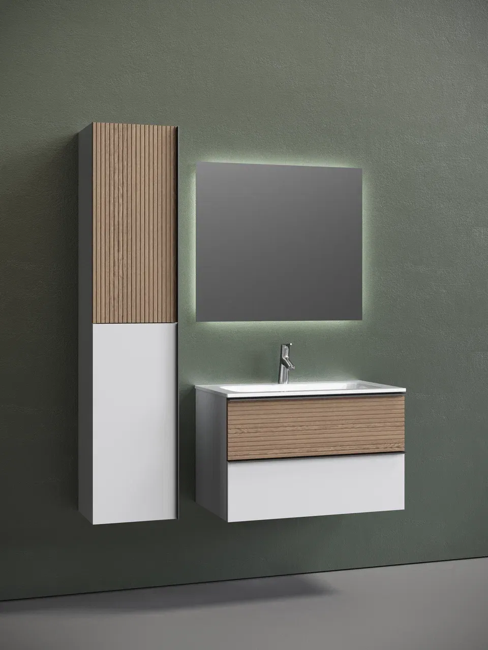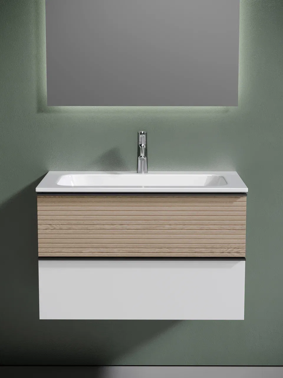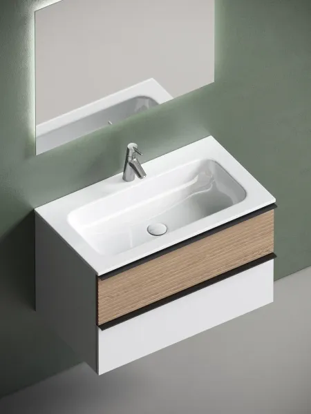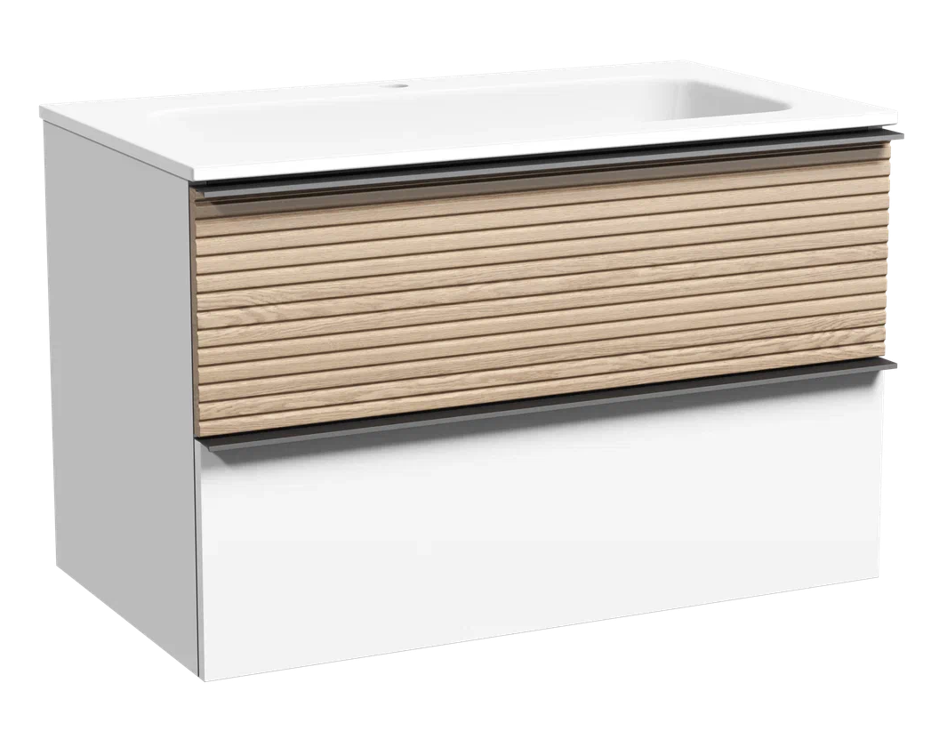 Подвесная тумба под раковину Sancos Delta DL80W 80см дуб светлый/белый