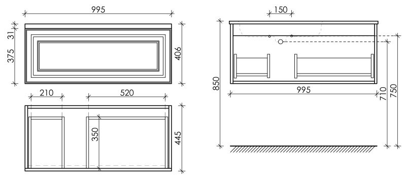 Подвесная тумба под раковину Sancos Very VR100LCE левая 100см Beige Soft купить