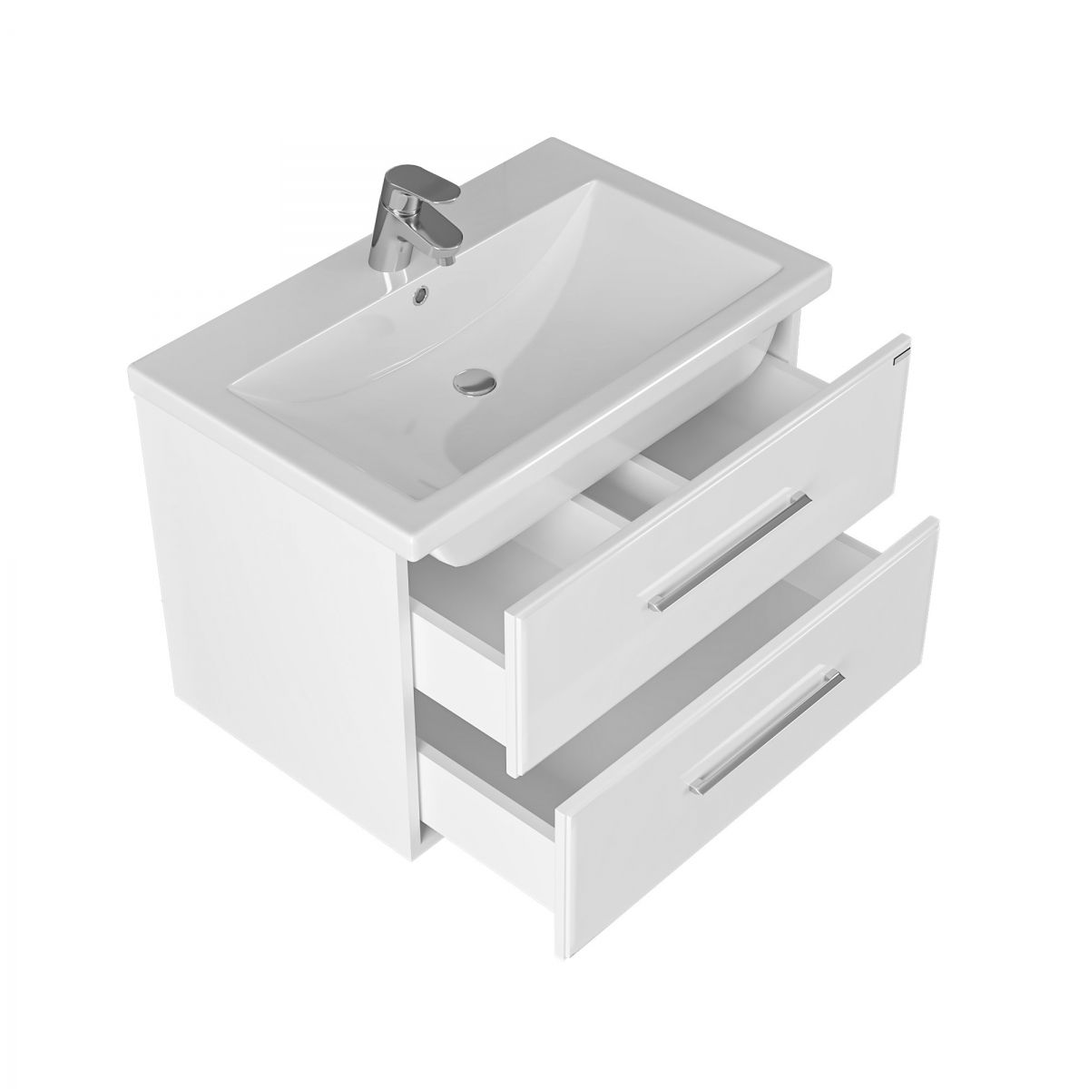 Тумба подвесная Омега 70 для умывальника Фостер 70. Корпус изделия выполнен из влагостойкого ЛДСП, фасад из МДФ и покрыт пленкой. Выдвижные ящики тумбы оснащены шариковыми направляющими полного выдвижения.