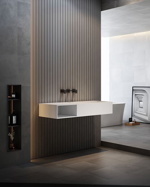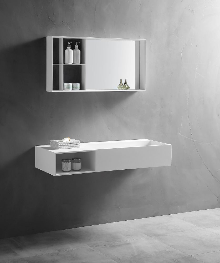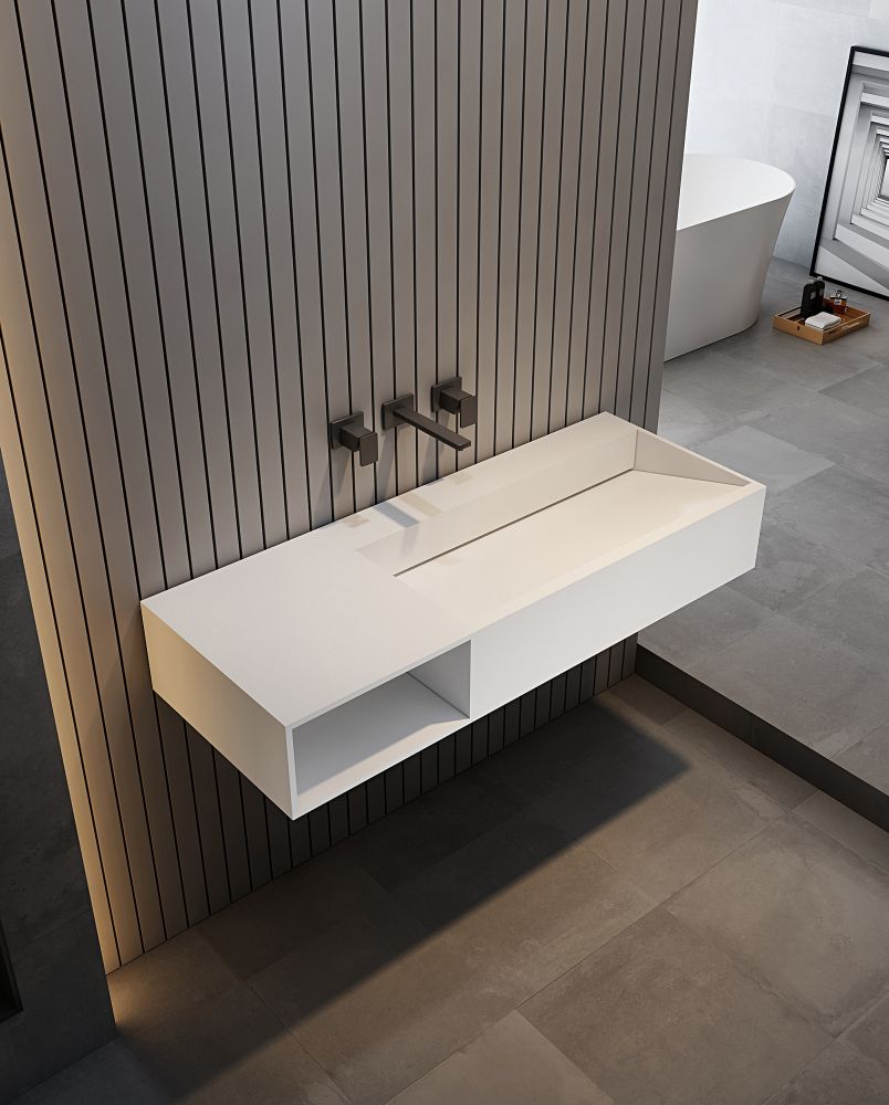 Подвесная тумба с раковиной ABBER Stein AS2640-1.0 L левая 100см белый матовый