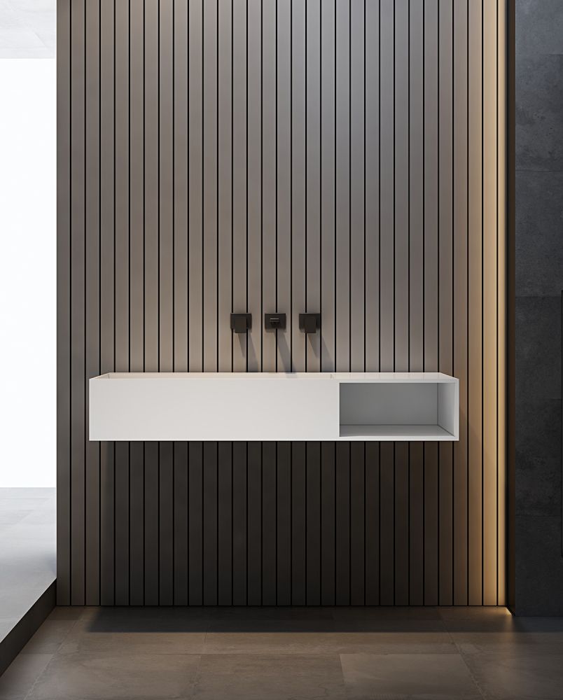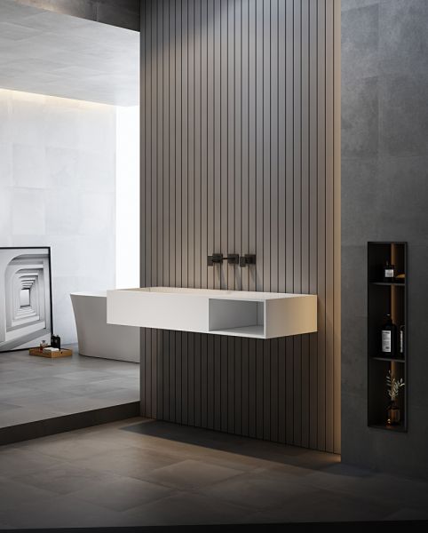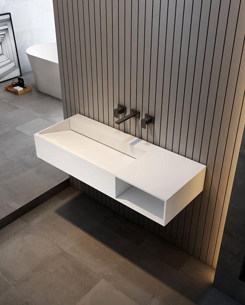Подвесная тумба с раковиной ABBER Stein AS2640 100см белый матовый