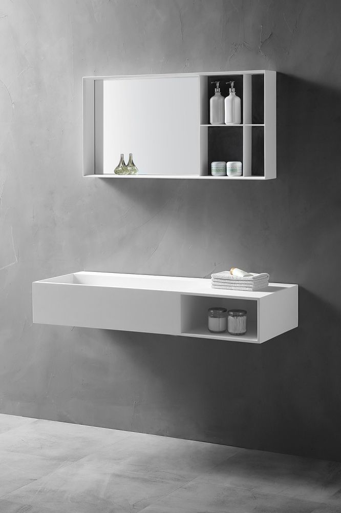 Подвесная тумба с раковиной ABBER Stein AS2640L 120см белый матовый купить