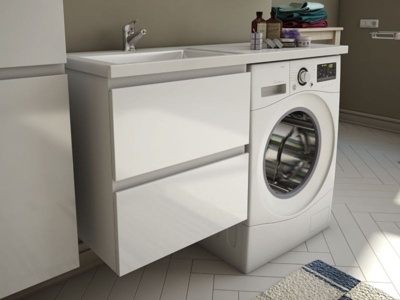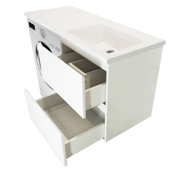 Коллекция мебели для ванной комнаты Dallas Luxe покоряет своей удивительной простой и функциональностью. Стильная лаконичная тумба, укомплектована раковиной из литьевого мрамора с удобной чашей. Стиральная машина устанавливается под столешницей, за счет чего экономит место в ванной комнате. В тумбе имеются два ящика. Нижний ящик тумбы – широкий и вместительный – предназначен для крупных предметов, а в верхнем имеется специальная организация пространства, позволяющая хранить мелкие вещи.
