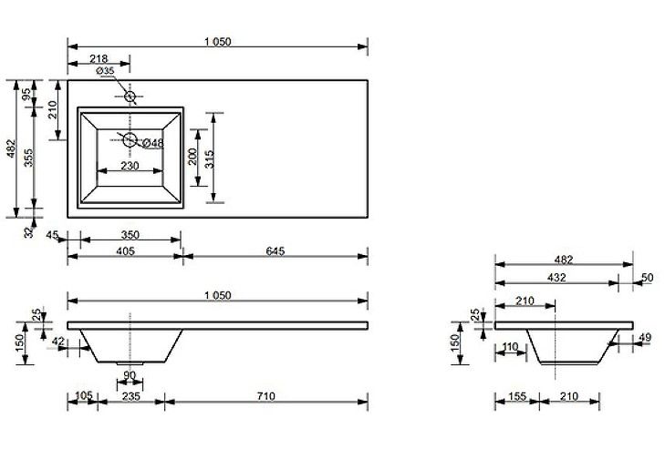 Подвесная тумба с раковиной Эстет Dallas Luxe ФР-00009679 П 105см длинный ящик белый купить