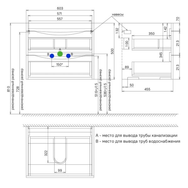 Подвесная конструкция тумбы делает ее воздушной и упрощает процесс уборки в ванной.