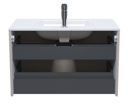 Два выдвижных ящика закрываются плавно и бесшумно благодаря высококачественным скрытым направляющим с доводчиками немецкого производства.