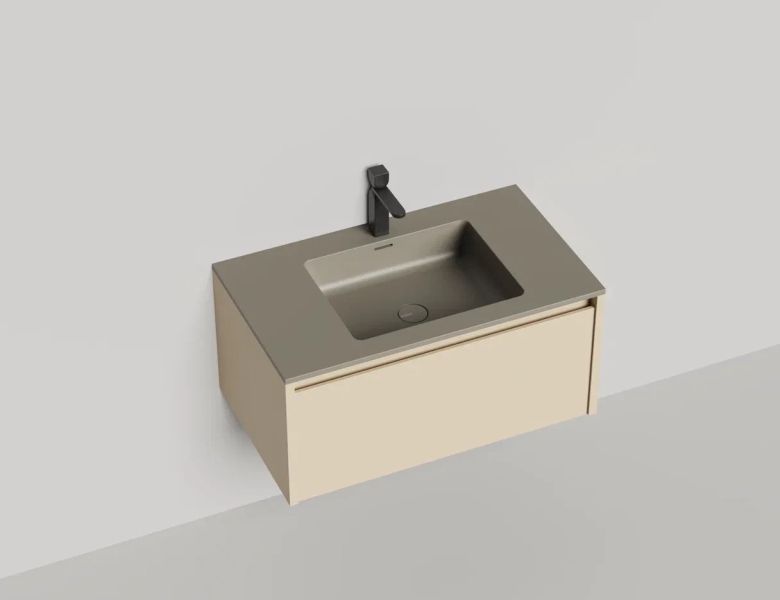 • Тумба и столешница из материала S-Stone в сборе (накладные раковины укомплектованы донным клапаном и поставляются в отдельной коробке)