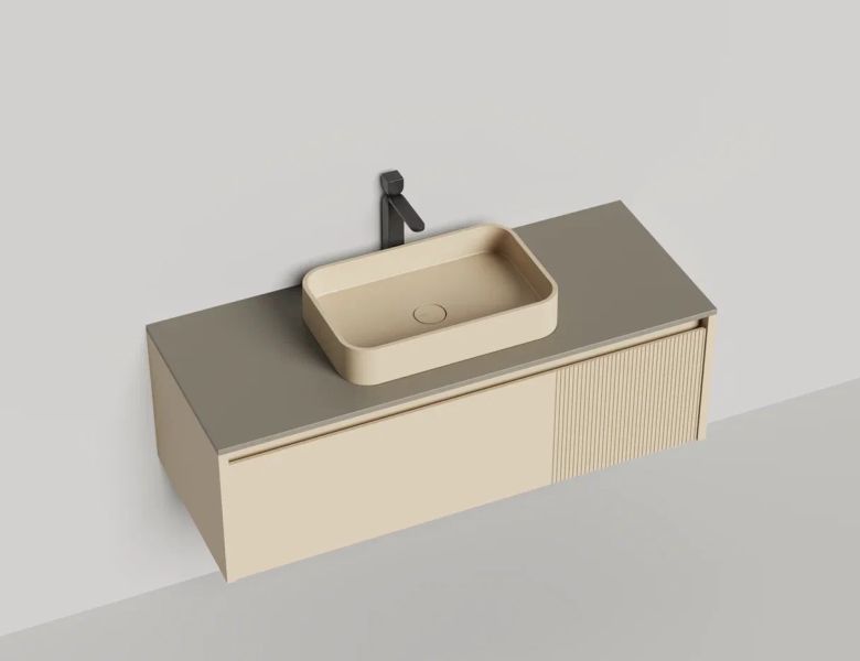 • Тумба и столешница из материала S-Stone в сборе (накладные раковины укомплектованы донным клапаном и поставляются в отдельной коробке)