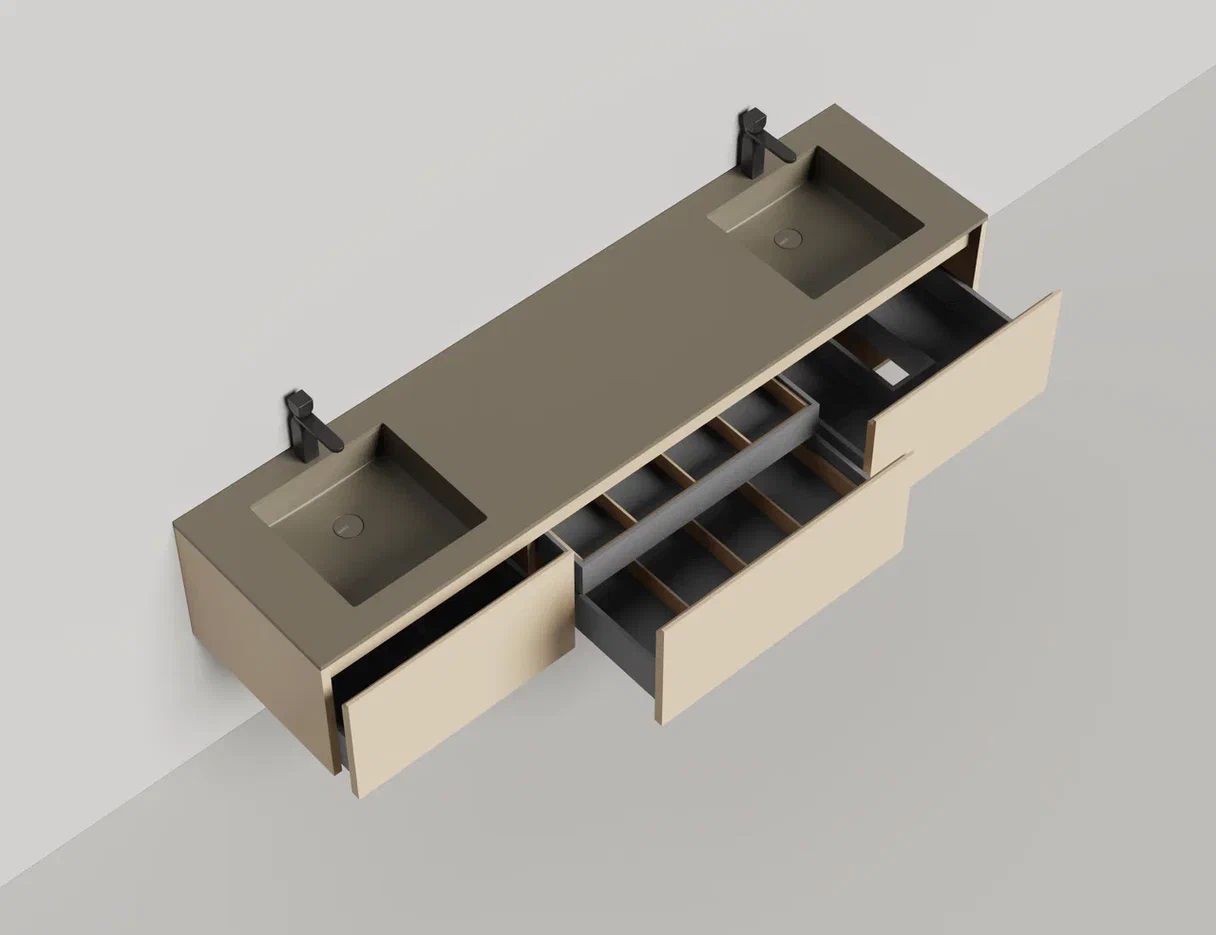 Наполнение для тумбы включает: блоки ячеек для тумб, коврики и комплект внутренней подсветки, которые помогут организовать пространство и создать более удобный доступ к вещам.Тумба DOMINO, дополненная столешницей COSTA из каменного литья S-Stone, гарантирует практичность и простоту ухода.