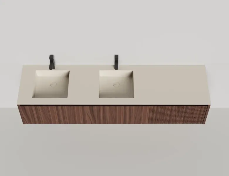 Подвесная тумба Salini Domino 27D220DINF 200см шпон с фрезеровкой для двух встраиваемых раковин