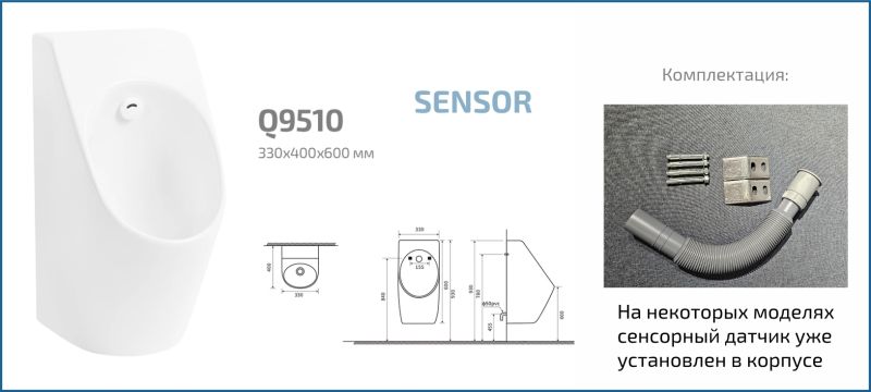 Подвесной сенсорный писсуар Gid Q9510 91115 белый 33x40x60.5