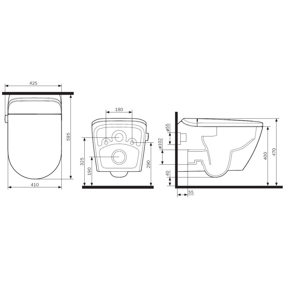 • Прилегание унитаза к стене: