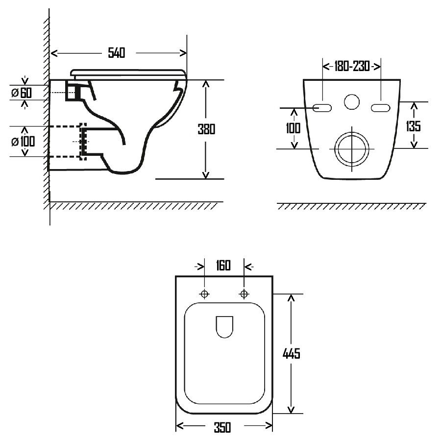 • Прилегание унитаза к стене: