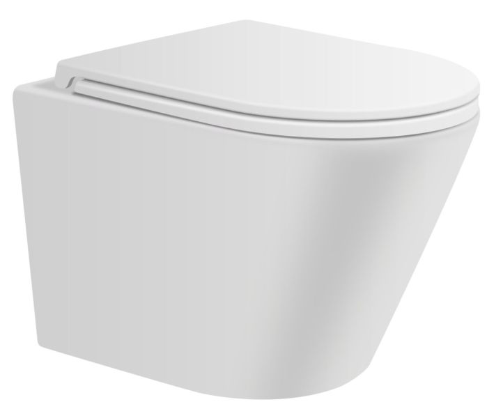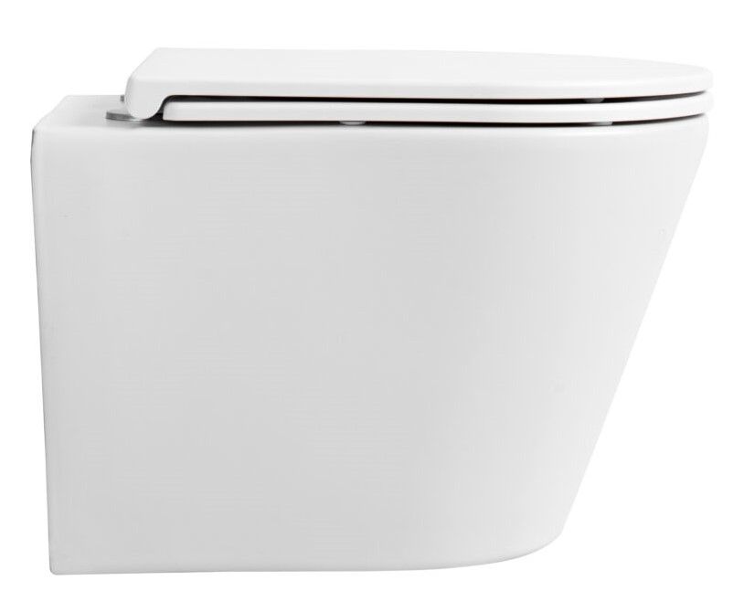 Подвесной безободковый унитаз с системой скрытого монтажа, крышкой-сидением из дюропласта с функцией soft-close и quick release.