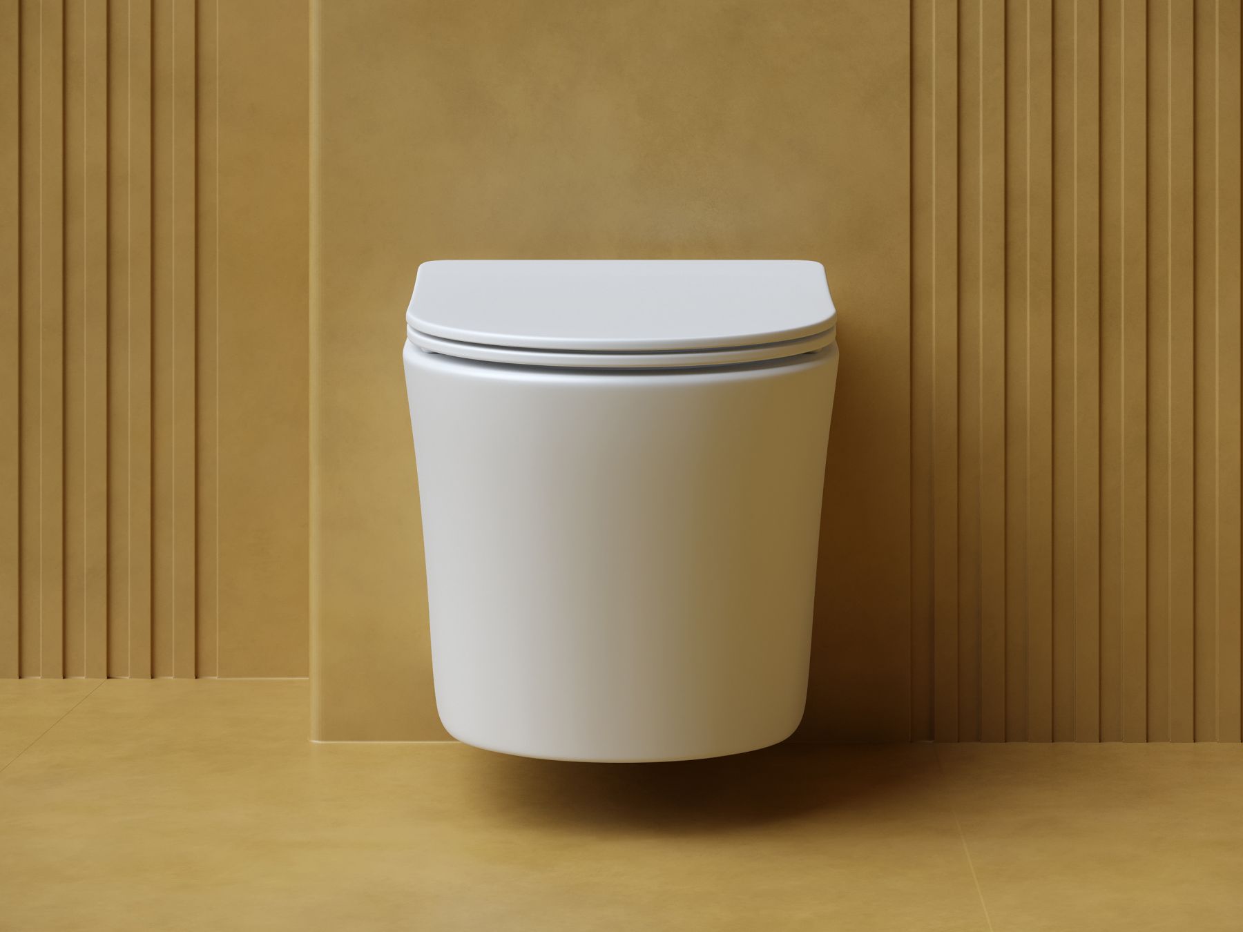 Подвесной унитаз Balearica Rimless (цвет Белый Матовый) , глубокий смыв, с крепежом для полностью скрытого монтажа, ультра тонким с сидением и крышкой с функцией плавного закрытия, дюропласт