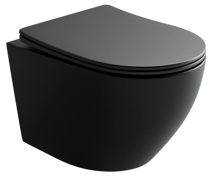 Подвесной унитаз Uno Rimless, глубокий смыв, с крепежом для полностью скрытого монтажа, ультратонким сидением и крышкой с функцией плавного закрытия, цвет чёрный матовый