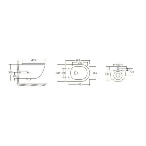 • Прилегание унитаза к стене: