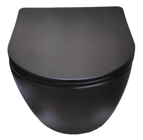 Унитаз в черном матовом исполнении, придаст Вашей ванной комнате особый шарм и изысканность. Элегантные, закругленные формы унитаза SELLA Aria MB бренда Cerutti SPA выглядят очень модно и современно, что позволит этой модели идеально вписаться в любой интерьер. Унитаз изготовлен из стекловидного фарфора, за счет чего поверхность идеально ровная, не боится влаги, устойчива к загрязнениям и воздействию химических веществ. Это гарантирует максимально долгий срок службы изделия. Стекловидный фарфор - современный, высококачественный материал, устойчив к сколам и внешним повреждениям. Низкая пористость покрытия фаянса, а также специальная технология его нанесения, предотвращает выцветание изделия и обеспечивает сохранность качеств на протяжении всего эксплуатационного срока. Безободковое исполнение унитаза существенно упрощает уход за изделием, обеспечивая чистоту и свежесть на долгое время. Безободковый подвесной унитаз Cerutti SPA SELLA Aria MB - идеальное решение для любой ванной комнаты.