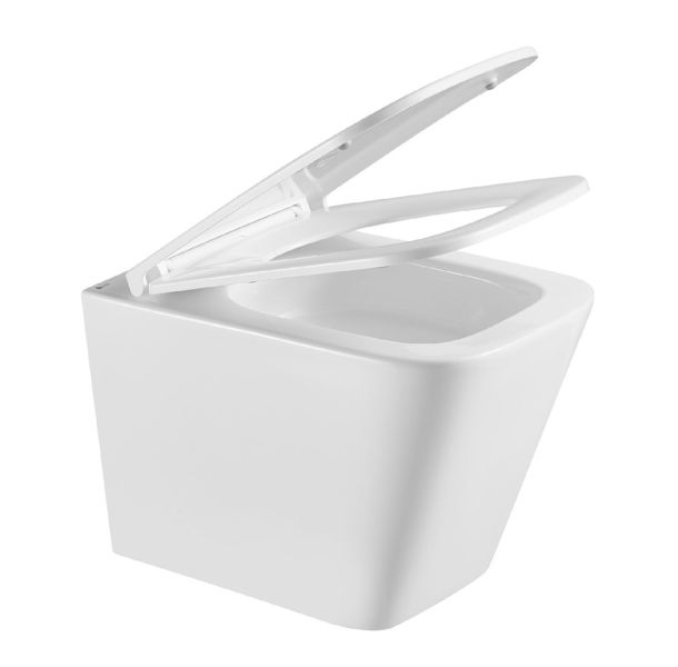- Безободковая чаша облегчает уход, предотвращает скопление бактерий и загрязнений, которые обычно накапливаются в труднодоступных местах традиционной ободковой чаши
