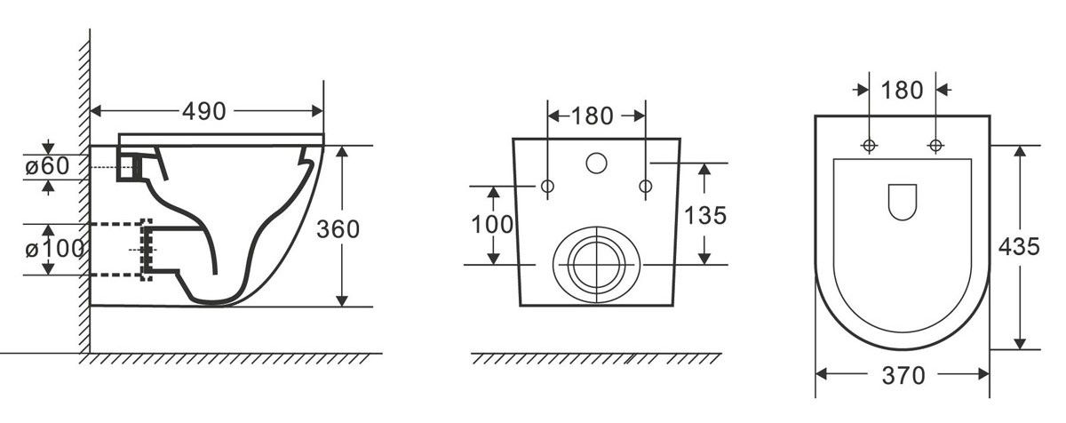 Прилегание унитаза к стене:вплотную
