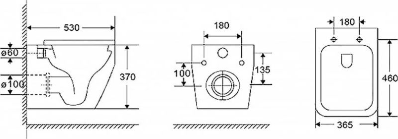 Прилегание унитаза к стене:вплотную