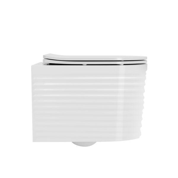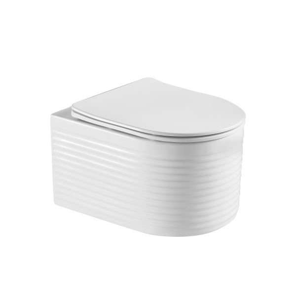 Комплектация унитаз настенный керамический безободковый; сиденье для унитаза из дюропласта ультратонкая легкосъемная с функцией плавного закрывания; инструкция/гарантийный талон