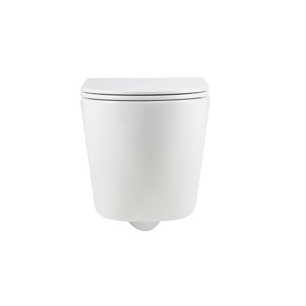 Комплектация унитаз настенный керамический безободковый; сиденье для унитаза из дюропласта ультратонкая легкосъемная с функцией плавного закрывания; инструкция/гарантийный талон