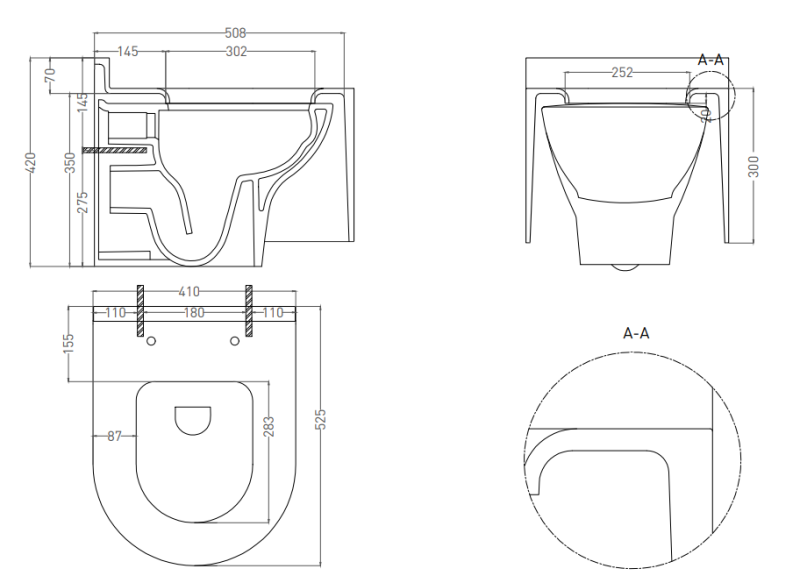 - Установка подвесного типа на инсталляцию, в комплект не входит